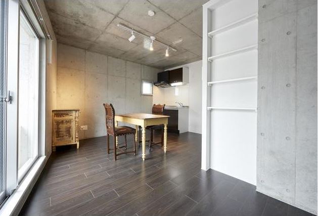 外観はコンクリート打ちっぱなしのデザイナーズな感じ。