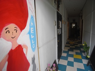 4人の女性クリエーターによるコラボ作品。充実設備の広くアートな共用部が特徴