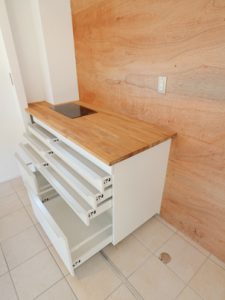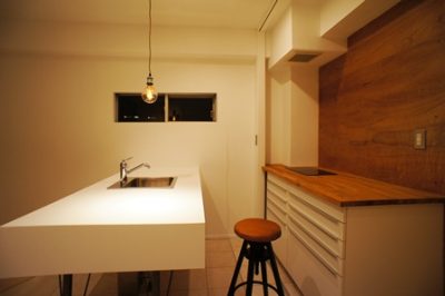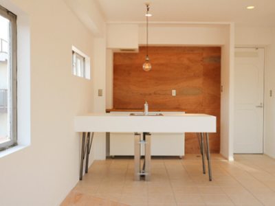 元々、パインの無垢床材やオーダーキッチン、造作洗面台が使用された